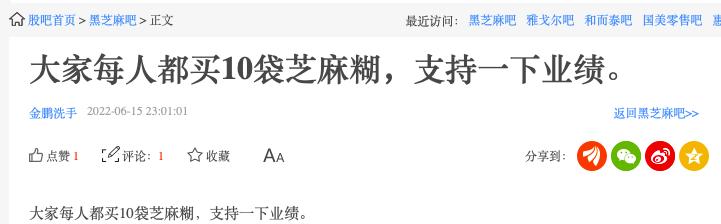 有投资者直呼,“大家每人都买10袋芝麻糊,支持一下业绩。”