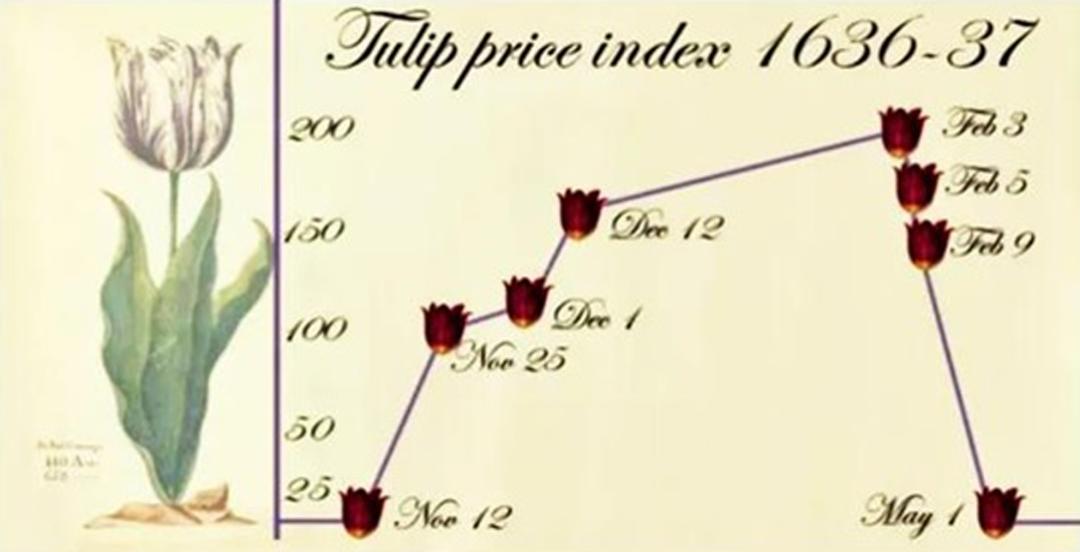历史上著名的还有17世纪荷兰的郁金香泡沫,最疯狂的时候,一粒郁金香种子可以换阿姆斯特丹市中心的二十套连排别墅;日本1980年代发生的房产泡沫,当时东京皇宫的土地价值,涨得比加拿大全国的土地价值还要贵。