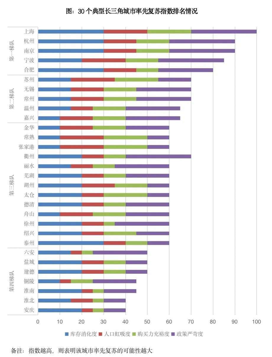 据克而瑞判断,长三角市场回暖将分为4个梯队:沪杭等率先回暖,苏南、浙东强三线轮动复苏,弱三四线低位盘整。浙西、苏北等需求透支的三四线城市正是第三梯队,今年年底有望迎来转机。
