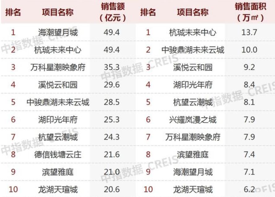 根据中指研究院最新统计的结果,1-5月份杭州销售榜TOP3项目海潮望月城、杭珹未来中心、万科星潮映象府,一共卖出了134亿元,每个项目开盘必摇号,万科星潮映象府可售房源289套,登记家庭达到4284户,几乎达到15:1;销冠海潮望月城的中签率也接近10:1。