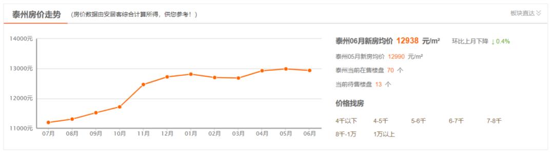 从58安居客数据来看,泰州房价从2021年下半年开始上涨,经过了今年初的小幅盘整之后,又重新回到上行趋势。