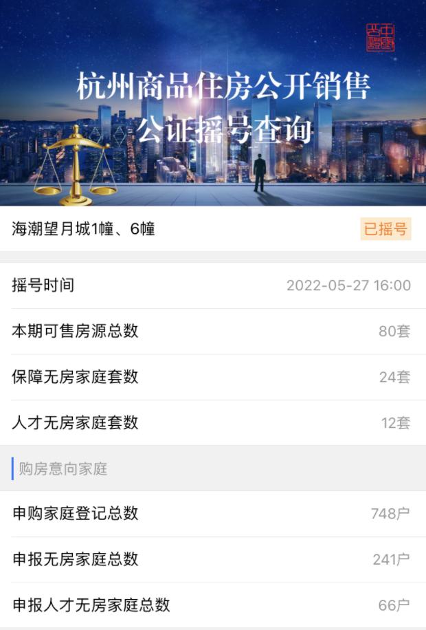 海潮望月城摇号情况 图源| 杭州市国立公证处官微