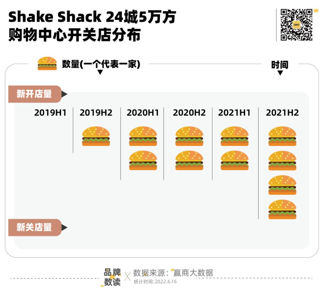 根据赢商大数据显示,从2019年至今,Shake Shack在24城5万方购物中心内的门店数量持续上升,并且在三年半以来没有关过一家店。