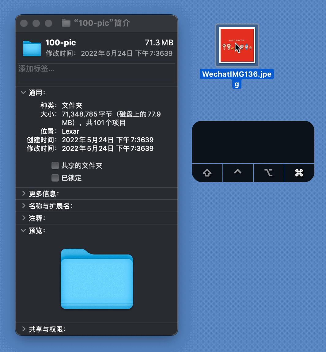 替换图标的方法也很简单,选中准备用来替换文件夹图标的图片,然后 Command ⌘+C 复制。在文件夹上右键 > 显示简介 > 弹出如下图左侧所示的文件夹简介。点击「简介」中的 icon,随后 Command⌘+V 把图标粘贴上去,或者直接拖拽上去,这样就可以轻松把图标替换成喜欢图片了。