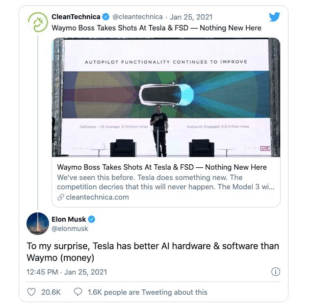 去年年初,特斯拉和Waymo曾发生过一次口水战。