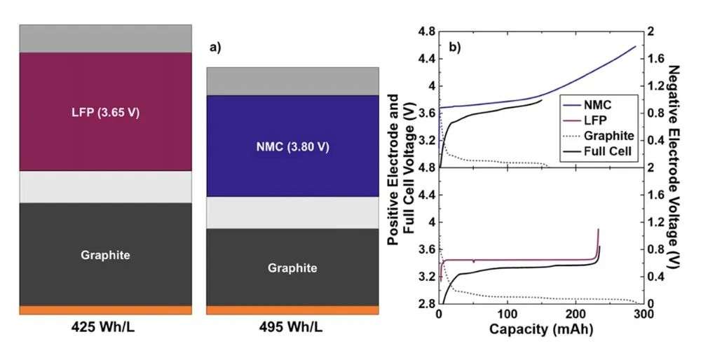 最终得到的三元锂电池的能量密度为495Wh/L,磷酸铁锂电池的能量密度为425Wh/L。