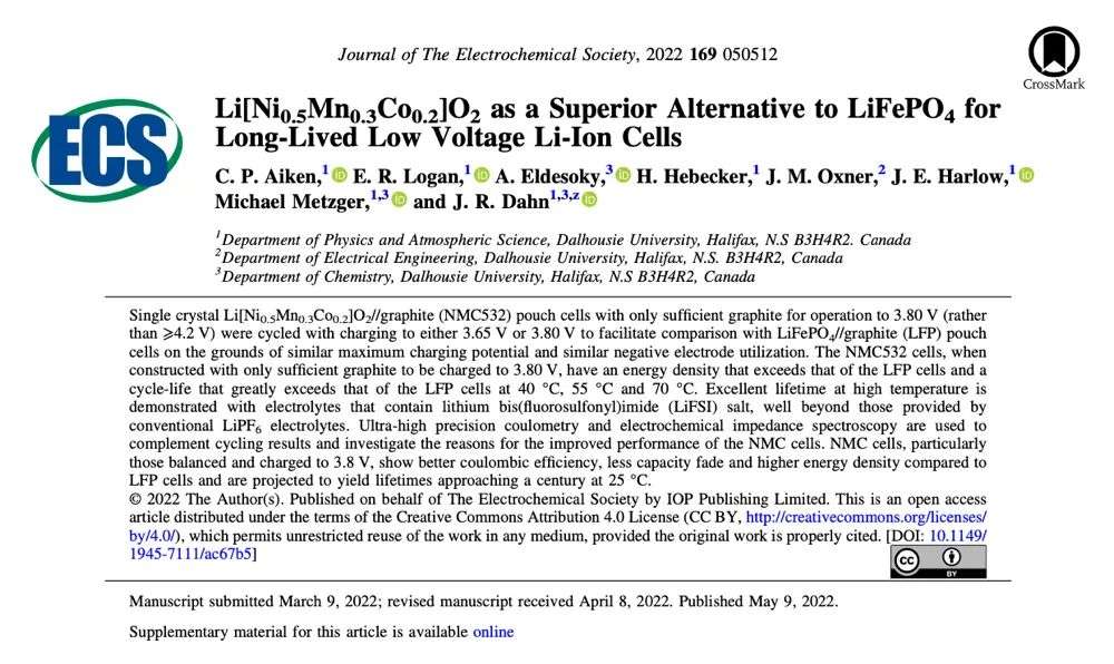 那么,Jeff Dahn及其团队的研究历程究竟是怎样的,除了电解质盐之外,这一新型的电池还有哪些秘密?日前,车东西将《NMC532对比LFP电芯,是长寿命、低压锂离子电芯的更好替代》这篇论文进行了全文编译,在不改变原文事实的基础上,略有删减,最终找到了问题的答案。