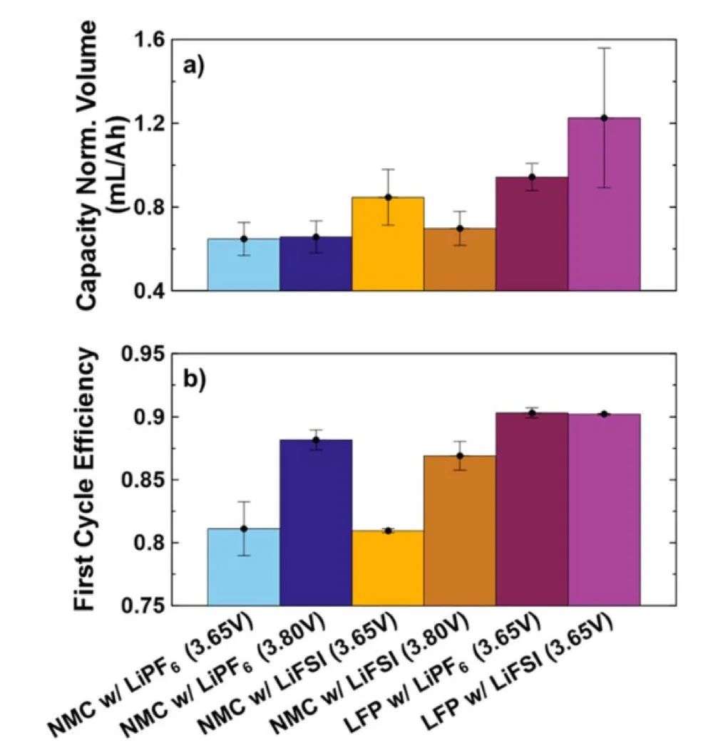 研究人员将电芯在120°C的真空状态下干燥14小时,每安时填充4.5g电解质,并在-90kPa气压下真空密封。