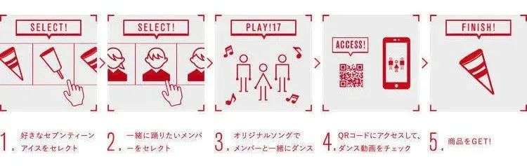 例如seventeen ice推出的“Cyber Vender”自动售货机,目前在全日本只有三台,这台机器因能让消费者和人气艺人一起跳舞而成为了颇受欢迎的打卡神器。