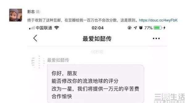 而随着流量明星、饭圈文化近年来的盛行,豆瓣一度还出现过更为极端的“一星运动”。在2019年《流浪地球》一片的公映过程中,就有相当多豆瓣用户及影评大V表示,曾被私信询过问是否愿意将其评分改为一星、甚至酬劳达到了1万元。但这样的一场不知是由哪个竞争对手发起的“一星打分”,演变为大量《流浪地球》的粉丝在应用商店上展开了对豆瓣的差评“复仇”,豆瓣APP评分也一度跌至2星。