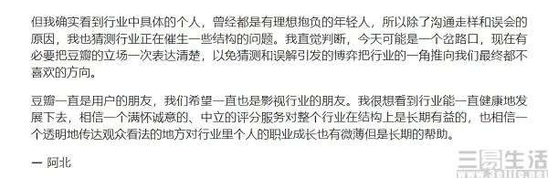 正如豆瓣方面此前所说,“豆瓣商务从来没有、以后也不会有任何与评分有关的合作”。无论这样的“诺言”是否会延续下去,有一点无疑是清晰的,那就是豆瓣评分可能远没有各方想象中的那么重要。