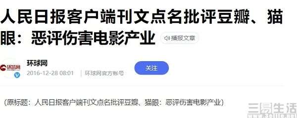 早在2016年,人民日报就曾发布过一篇题为《豆瓣、猫眼电影评分面临信用危机 恶评伤害电影产业》的文章,其中针对全国上映的贺岁档3部国产影片,《长城》、《摆渡人》、《铁道飞虎》的“低评分”现象(均低于6分),对豆瓣等有着评分机制的平台提出了批评。随后豆瓣创始人杨勃(阿北)针对这一质疑也进行过回应,他表示,“豆瓣有一套很严谨的算法机制,当评分人数足够多时,评分很难为人左右”。但在当时豆瓣并未就此修改评分机制,而猫眼方面则取消了专业影评人的打分。