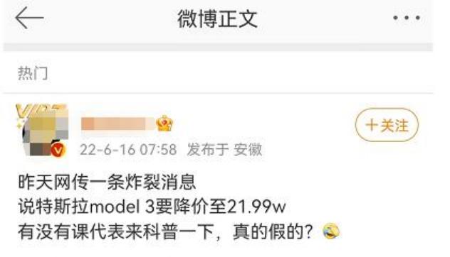 而且近期还不断有网友爆料称,特斯拉将下调入门级车型的终端售价,国产Model3价格有望暴降6万元。