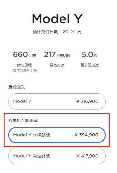 无独有偶,从特斯拉中国官网得知,国产特斯拉Model Y也有所涨幅,双电机长续航版现售价为394900元,而此前售价为375900元,涨幅为19000元,Model Y 的其他版本和Model 3车型售价不变。