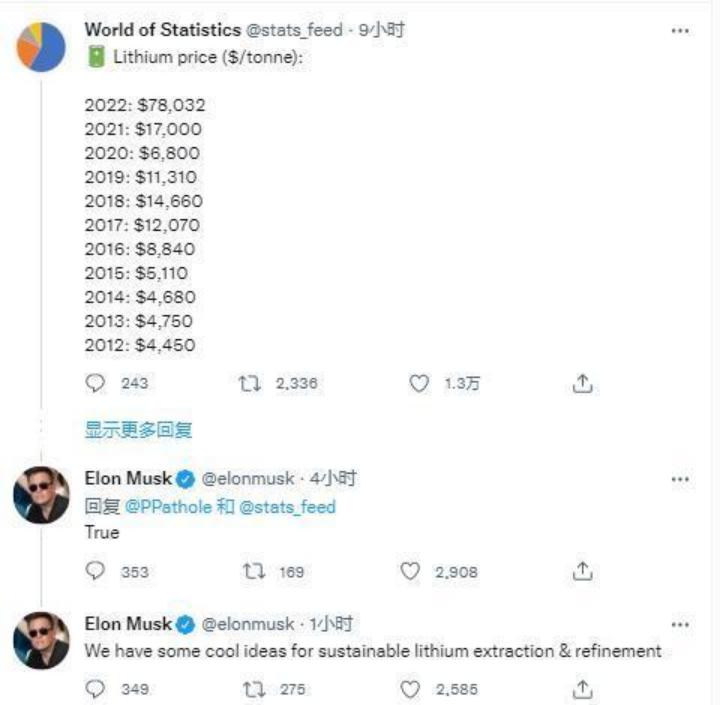 关于涨价原因,特斯拉没有透露,但今年早些时候,特斯拉首席执行官马斯克曾在推特上表示:“锂的价格已经到了疯狂的水平!除非成本有所改善,否则特斯拉可能不得不直接大规模地进行采矿和精炼。”他补充道:“锂元素本身并不缺乏,但提取、精炼的速度很慢。”