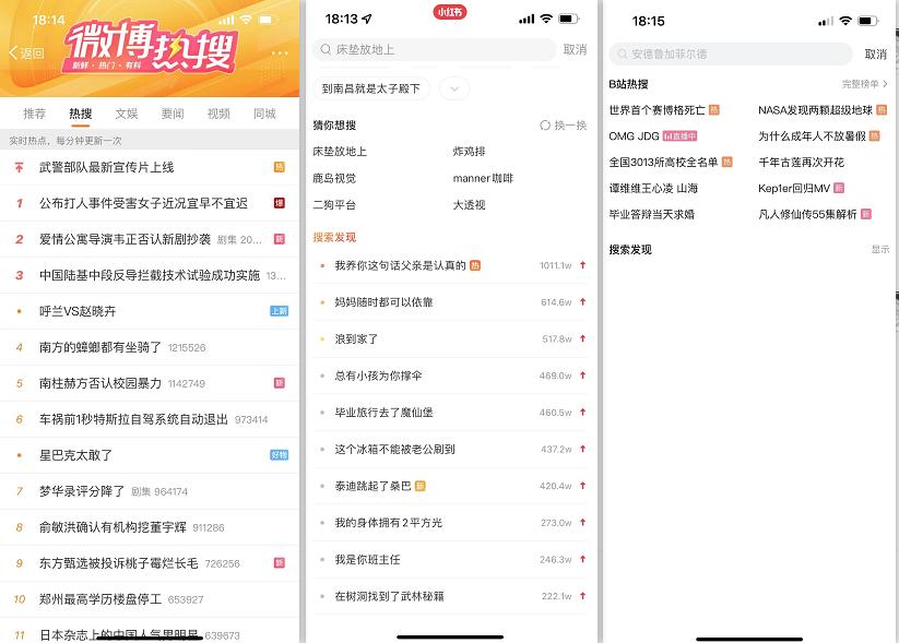 一般来说,用户有搜索行为出现,平台便会根据搜索数建立搜索榜单,例如微博、小红书、B站等。