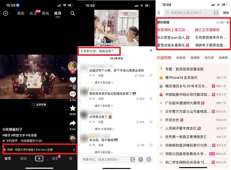 这种多入口、个性化的搜索产品,非常适合抖音用户的“胃口”,据@巨量引擎观察营销 在 6 月 15 日报道,在今日头条和抖音,看后搜索的用户甚至达到了57%。
