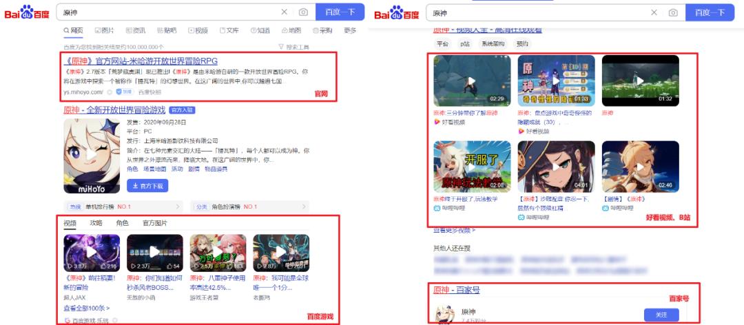 例如,用户在百度中进行搜索时,不仅可以查看官网信息,也能搜集到百度游戏、好看视频、百家号、B站的其他网站的内容。