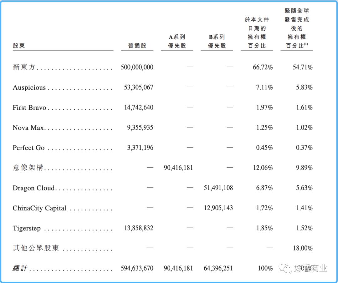 2019年3月,新东方在线登陆港交所。招股书显示,腾讯当时持有新东方在线90416181股A系列优先股,每股成本0.5627美元,IPO前持股比例12.06%,IPO后持股9.89%。腾讯是新东方在线第二大股东。