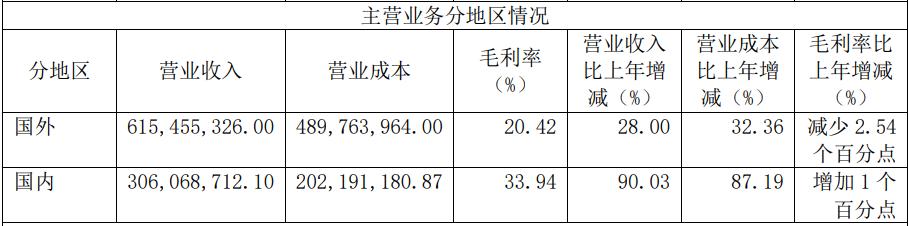 图源:牧高笛官网牧高笛2021年国内外营收数据