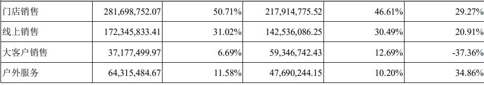 图源:三夫户外官网21、20年营业收入、占比及同比增减三夫户外销售模式概况
