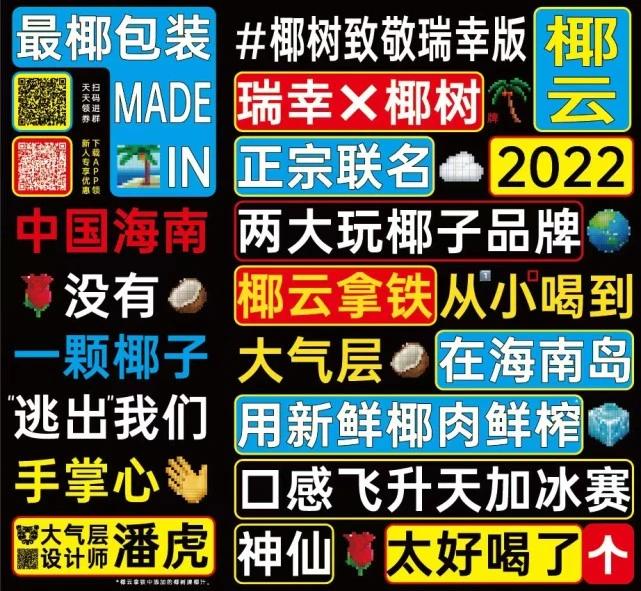 紧接着受原材料椰子的影响,椰云系列缺货,杯套和手提袋等包装也缺货,瑞幸适时将包装的设计源文件公开,让大家自己去打印,市场面也出现了瑞幸X椰树联名的手机壳。