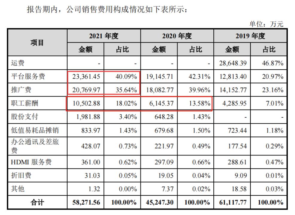 可以看到,绿联2021年的员工薪资为1.05亿元,占到总营收的18%。这一数字在2020年仅为6145万元,短短1年时间,涨了4357万。