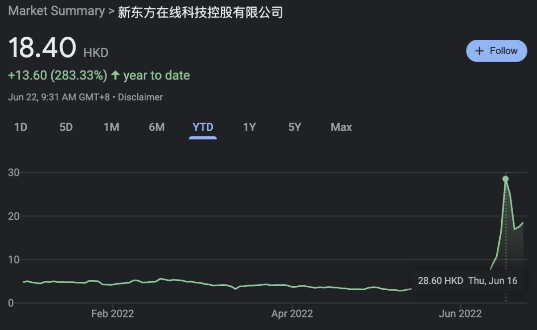 东方甄选直播间里的董宇辉,一边拾起老本行教英语、分享人生感悟,一边直播带货卖牛排、卖大米,住在了热搜和带货榜上。从6月13日开始,东方甄选一周增粉近1400万,同时据新榜数据,直播间一个月销售额已达4.34亿元。连带着戏剧性发展的是新东方在线的股价,从低迷停滞到一度拉升7倍,接连暴涨后又因遭腾讯、摩根士丹利等巨头清仓式减持而暴跌。