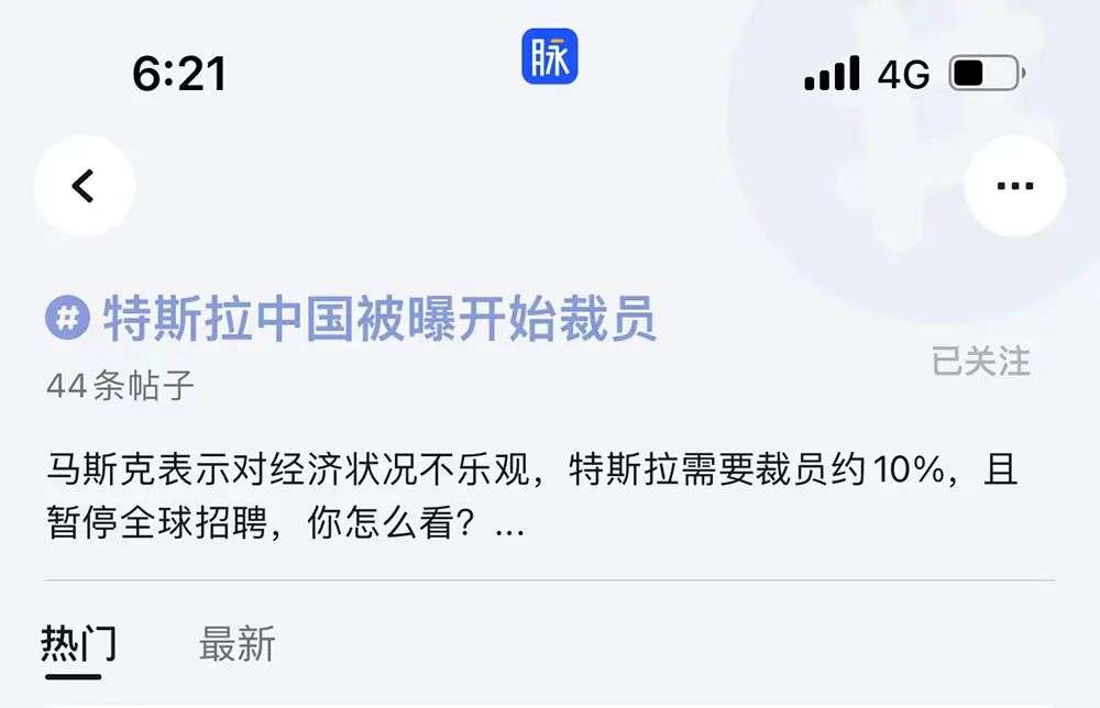▲脉脉“特斯拉中国被爆开始裁员”词条