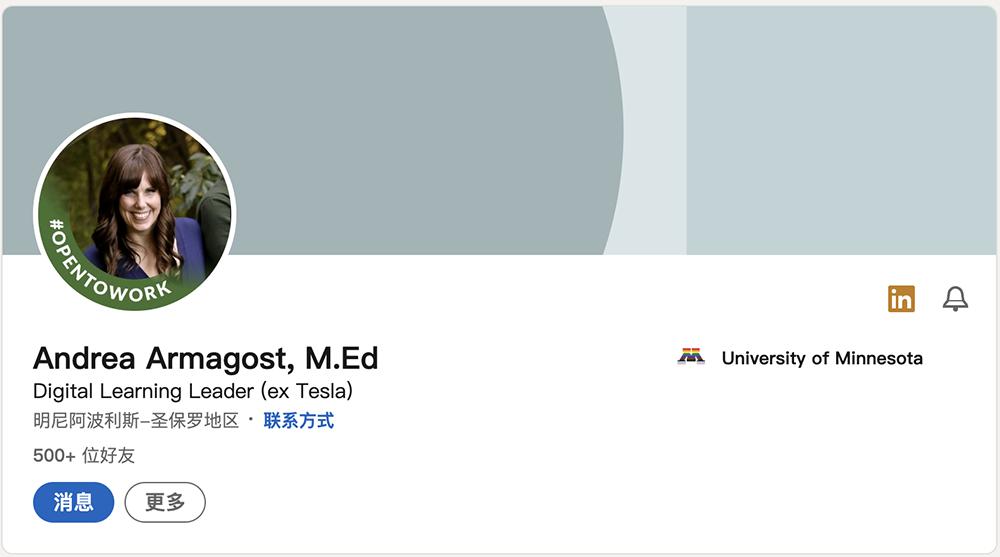 ▲被裁中层员工Andrea Armagost,M.Ed领英主页