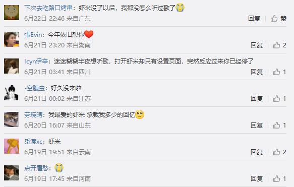 怀念虾米已经成为了一种现象,直到今天,仍然不断有老用户在虾米音乐官方微博的告别公告下日常“扫墓”:“好久没来啦。”“今年已久想你。”已经逝去的虾米音乐收获了近乎百分百的好评。在这条告别微博下,目前已经积累了3.7万条评论。