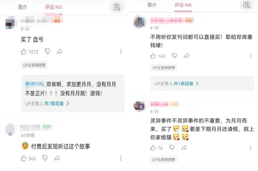 作为第一个“吃螃蟹”的人,该视频推出后,迅速引发关注和讨论。不少网友认为售价偏高,“买了血亏”“付费后发现听过这个故事”,或者认为“这类视频的公共资源很多,真的不合适”。当然,也有网友直接冲着UP主而来,甘愿“为爱发电”,表示支持。