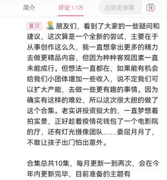 在近2分钟的“发刊词”视频中,该UP主介绍了做付费内容的原因,并称为了让专辑看起来高端一些,还特地花钱租了电影院场地,更新频率为一个月至少两集。