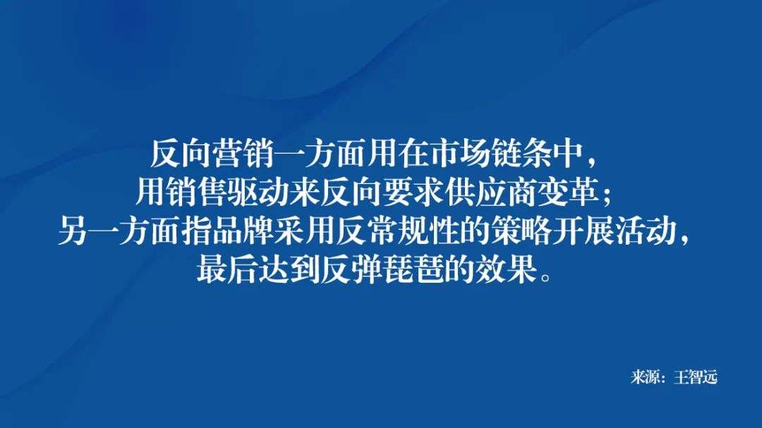 一方面用在市场链条中,即用销售驱动来反向要求供应商变革;另一方面指品牌采用反常规性的策略开展活动,最后达到反弹琵琶的效果。