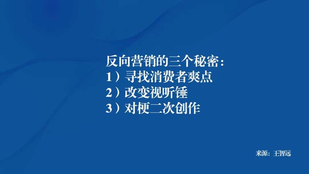 另外,反向更多是一种手段,如果没有很好的产品作为依靠,仅仅靠营销去包装,那么好奇之后伤害的还是品牌自身的信誉。