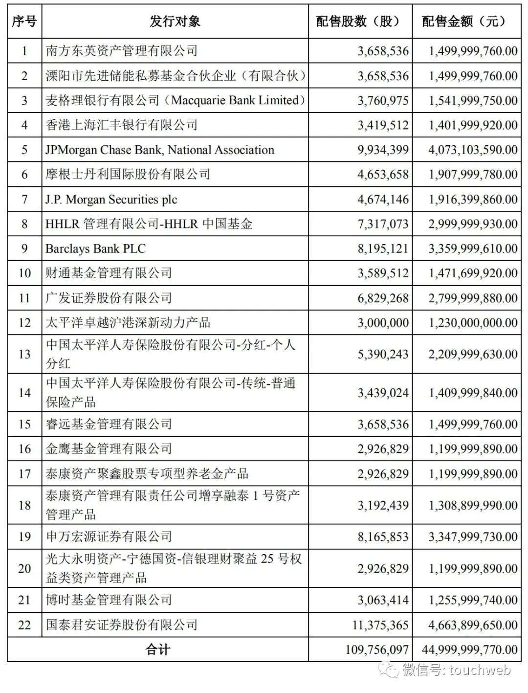 此次共有22家机构参与了宁德时代此次定增,认购的起步价都超过10亿元。