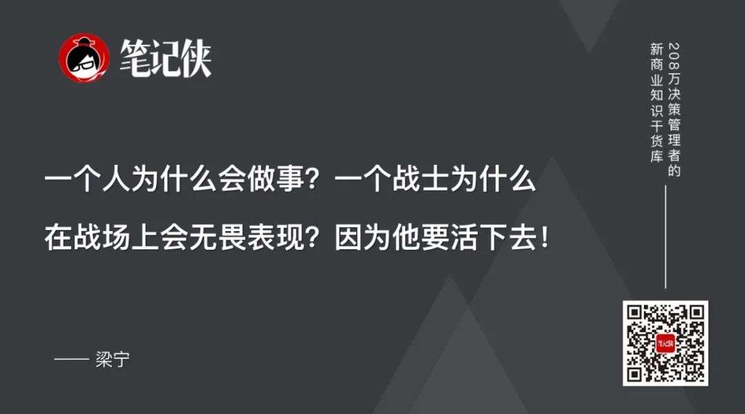 一个人为什么会做事?一个战士为什么在战场上会无畏表现?因为他要活下去!