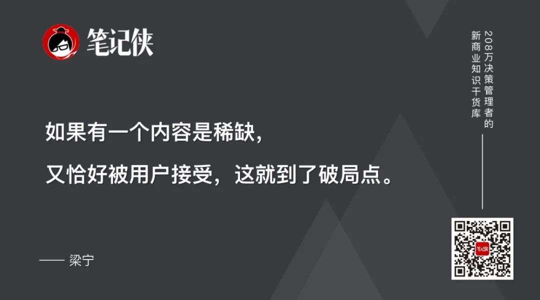 如果有一个内容是稀缺,又恰好被用户接受,这就到了破局点。
