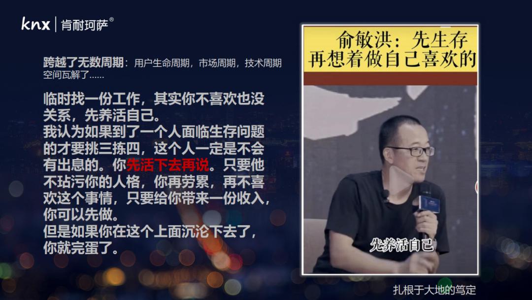 这就是俞老师,一个曾经穿越过周期的人,曾经遇到过巨大的风险和波折,曾经面对过空间破损的人,才会有的一种生存智慧。