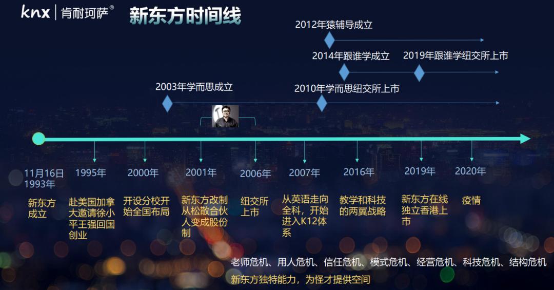 我们回过头来,拉一拉新东方的时间线,这一拉就是30年,这也是俞老师的激荡30年,新东方经历了八大转折和七大危机。