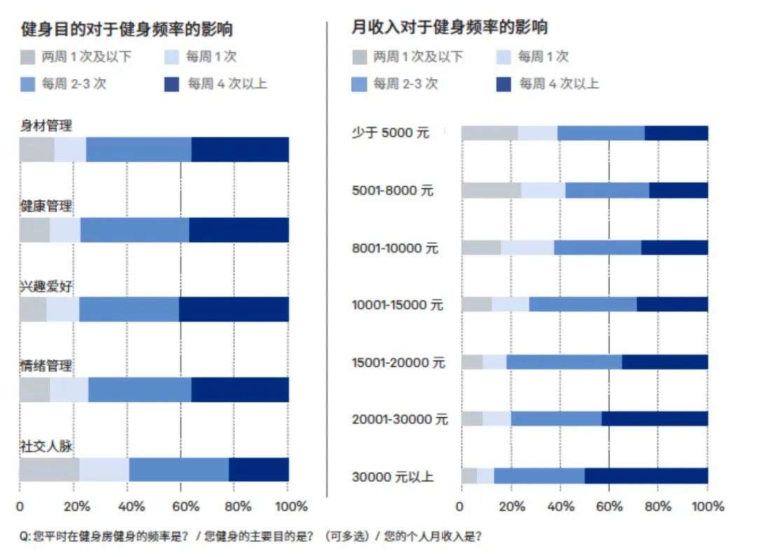 除了财务能力,「健身自由」的背后,也是健身目的和健身频率双重影响的结果。