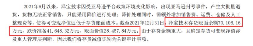 封号对泽宝确实造成了巨大的影响,其2021年库存账面余额约7.01亿元,这些库存跌价了约4.16亿元。