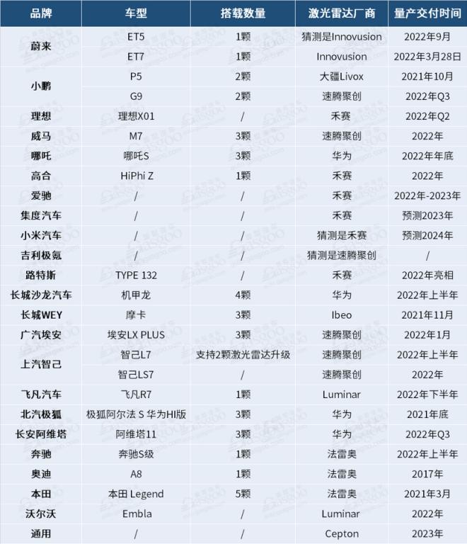 事实上,自2021年小鹏新车P5发布,开启智能汽车搭载激光雷达的序幕之后,激光雷达就已经成为新车标配。