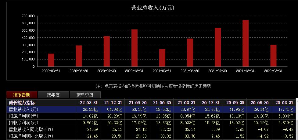 根据公司规划,今世缘2022年要确保实现营收75亿元,挑战80亿元。一季度,公司营收29.88亿,要完成80%的年度目标,就意味着三季度末营收至少要达到60亿,也就是二、三季度要完成30.12亿。