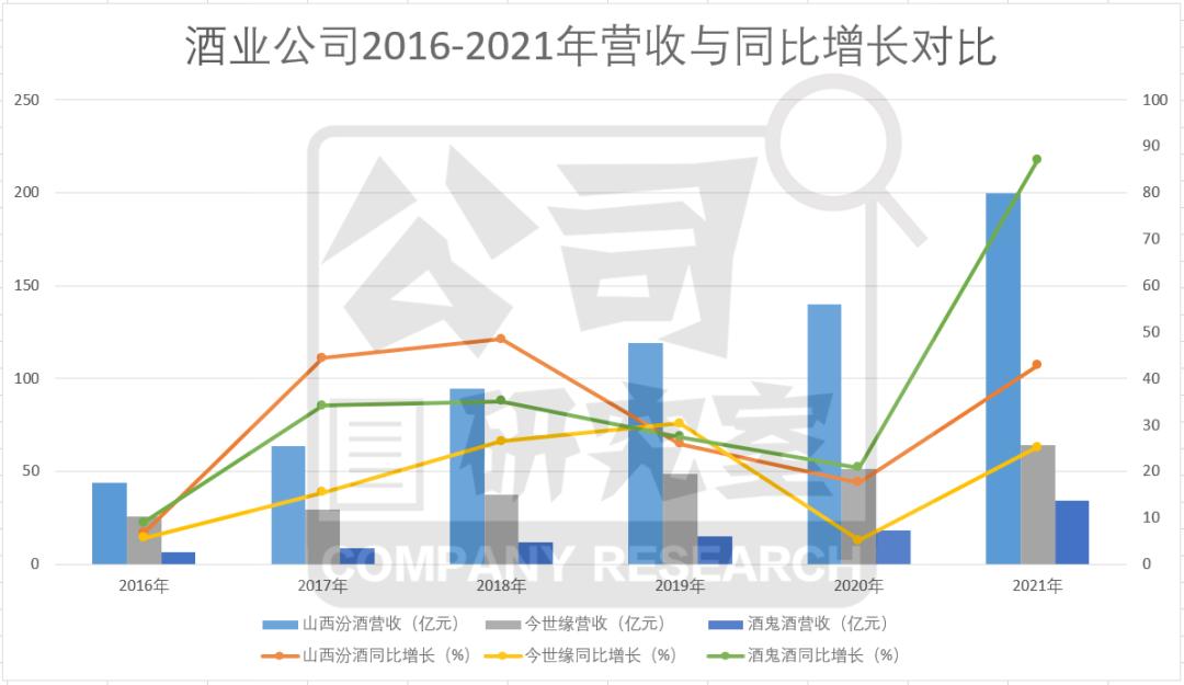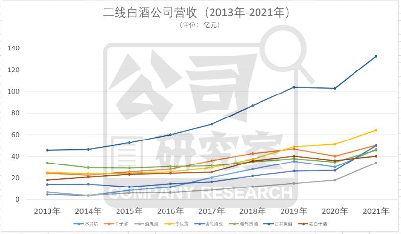 不过,2017年前后,市场出现新的重大变量,那就是山西汾酒(600809.SH)开始有意识地主打自己的次高端品牌青花汾,积极谋划全国性布局。几乎与此同时,酒鬼酒(000799.SZ)、舍得酒业(600702.SH)、水井坊(600779.SH)、迎驾贡酒(603198.SH)等积极跟进。目前,山西汾酒已成功出圈,从偏居山西一隅,成功跨越长江,进军珠三角,营收也跨入200亿阵营。