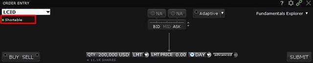 上面我提到流动性和低空头利率是在其他无利可图的电动汽车生产商中选择 LCID 的原因之一。这些因素使您可以从经纪人那里借入足够的股票来做空。