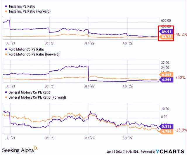 相比之下,通用汽车的相应倍数下跌了 54%(月平均收缩 4.6%),而股票下跌了 35.55%。福特当时的市盈率为负。