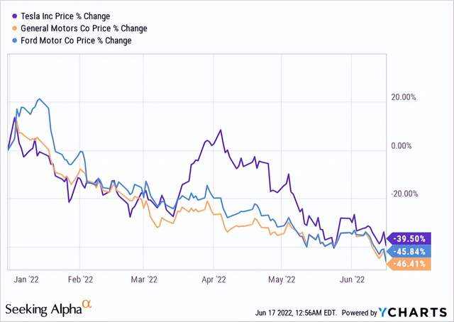 第四,通用和福特都没有像特斯拉那样强大的零售支持。在我看来,这是一个需要考虑的重要标准。这些公司在市场抛售中下降了大约相同的百分比,尤其是最近。