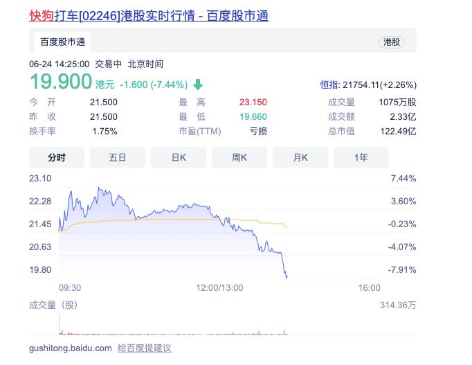 快狗打车登陆港交所,午后跳水跌超7% ,市值122亿港元
