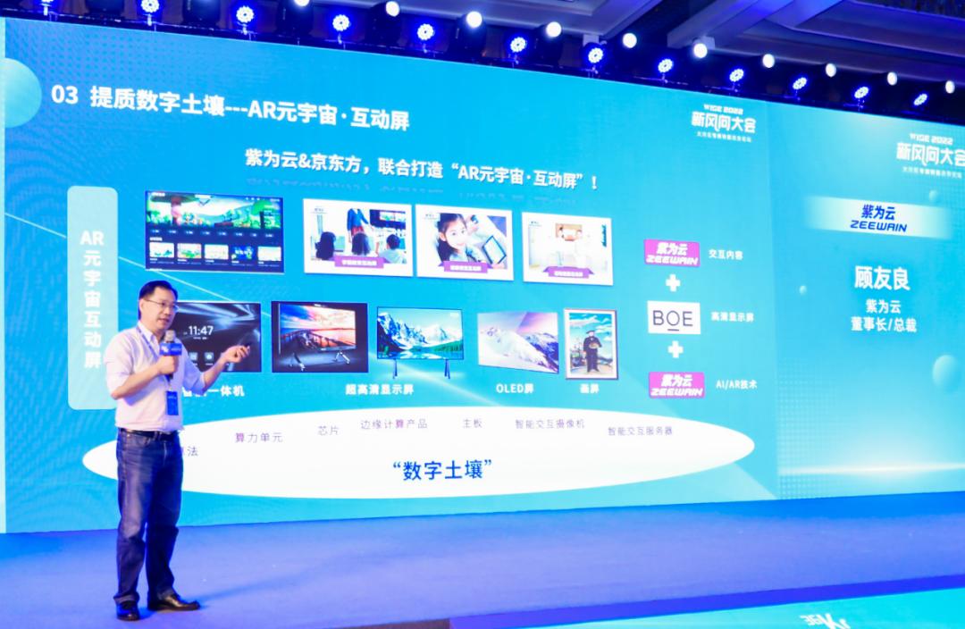 目前「紫为云」和全球先进的高清显示厂家「京东方」合作,昨天我们签了战略协议,联合打造“AR元宇宙互动屏”。为什么是“AR元宇宙互动屏”呢?因为AR是增强现实,是能真切感受到虚实交互的形式。
